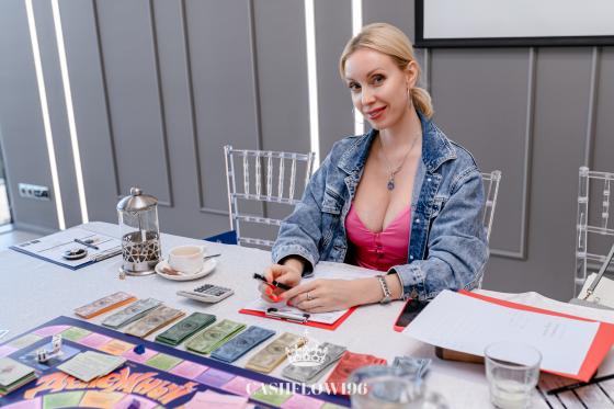 💵 Четвёртое место у Татьяны, она создала три фонда и долгое время была без пассивного дохода и только в самом конце игры подряд выпали три сделки с хорошим доходом! Татьяна последний вышла на большую круг и купила там два предприятия с общим доходом в 13 000 $!