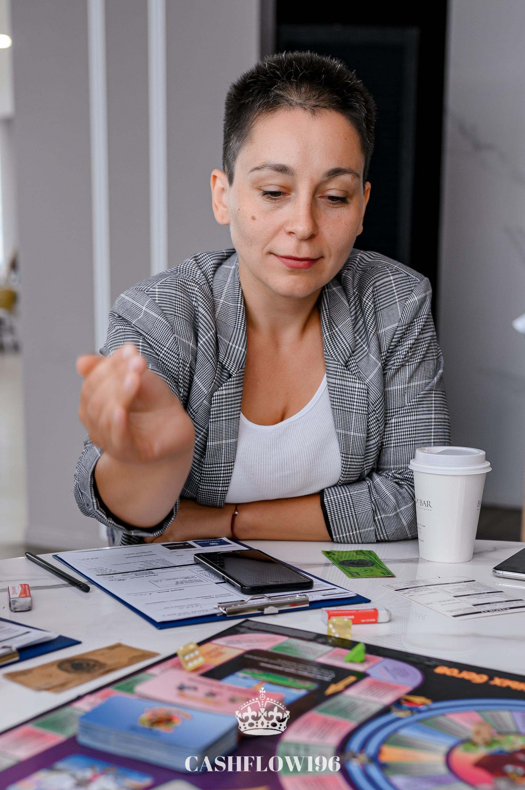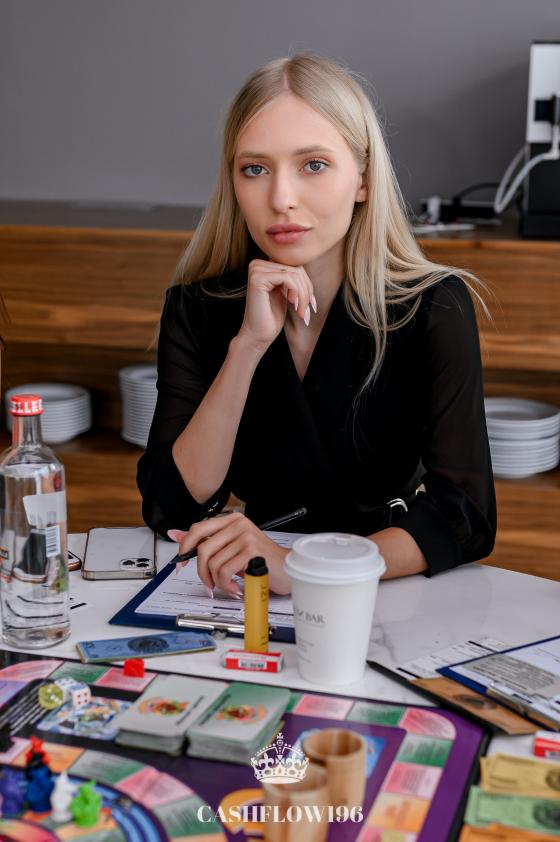 Ксения в этот раз на четвёртом месте. Ей не хватило буквально нескольких минут, чтобы вырваться с крысиных бегов. Заработала на акциях и домах 3/2, которые попадались ей почти в каждой сделке. В момент, когда Ивану выпала пиццерия, убедила стол не помогать ему финансово, чтобы не усиливать одного игрока.